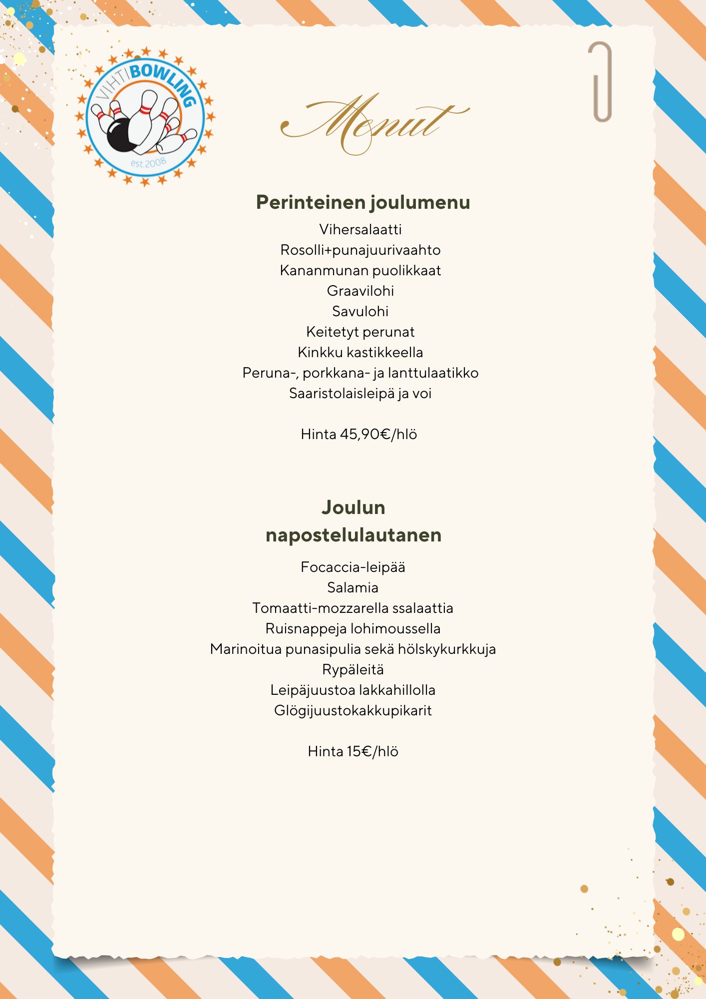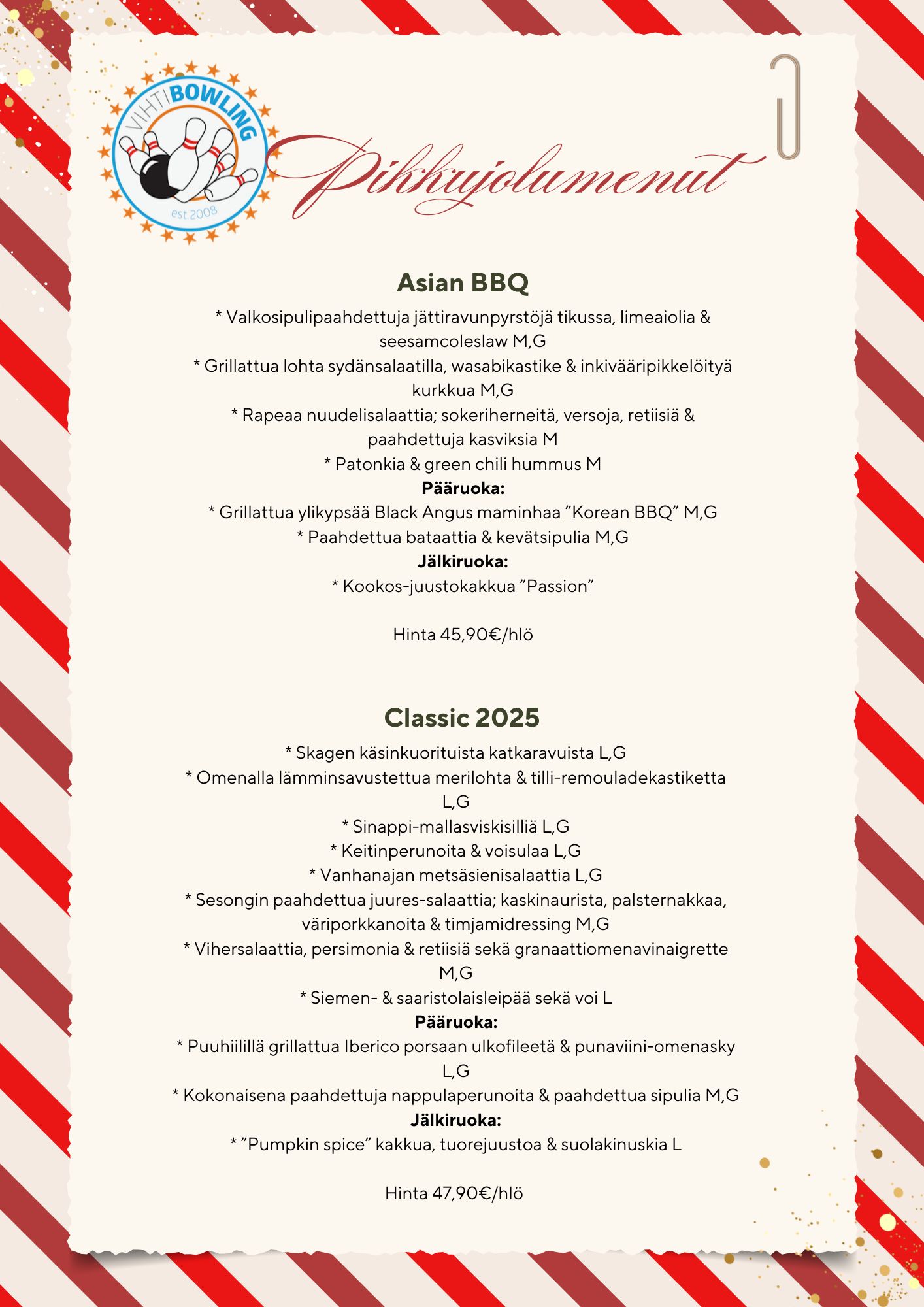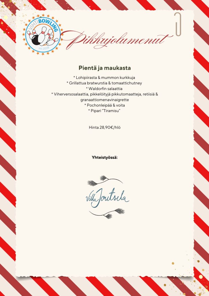 Keilauksen ja biljardin lisäksi pikkujouluihin voi yhdistää kokous- ja saunakabinettimme käytön ja tilata herkullisen pikkujoulumenun tai vaihtoehtoisesti jotain pientä purtavaa. Kysy tarjous, räätälöidään vuoden parhaat kemut teille!